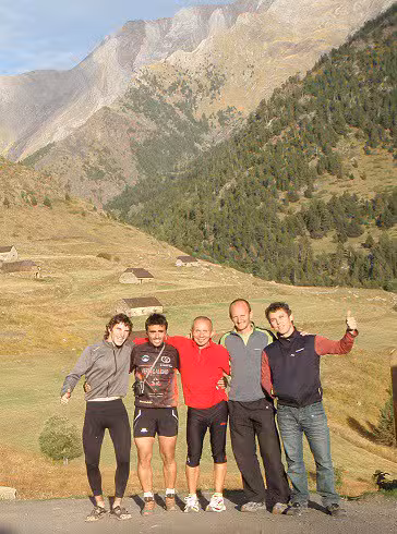 Remontamos el bosque por la otra orilla, reponemos agua en un arrollo y alcanzamos el GR11 que proviene del cercano Refugio de Estós y al trote comenzamos el ascenso por un tramo bastante suave. A medida que el camino se va empinando vamos bajando el ritmo y el grupo se estira. Yo ya estoy muy cansado y todos se van alejando aunque aún puedo verlos. Martín, que cuesta arriba se recupera bien, me anima desde lejos; se lo agradezco. Hace frío, la montaña tapa el sol. Empiezan los calambres y la subida se me hace interminable. Voy solo, paso a paso, concentrado, no parar. Lo que me anima es estar seguro que arriba me espera Lurdes que me ha prometido que iría al Collado de Estós. Y así es; alcanzo el collado y ALLÍ ESTÁ. He llegado hecho polvo. Pero todos me han esperado. De nuevo el sol, el “frío” desaparece. Ya estoy en casa. También ha venido Cristineta de Plan. Hemos invertido 7 h y 5 minutos y recorrido 27 kms.